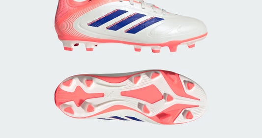 La suola FG/MG è progettata per offrire trazione e sicurezza sia su campi in erba naturale compatta sia su erba artificiale, rendendo il modello estremamente versatile.La colorazione grigio con dettagli rosa e blu dona uno stile moderno e riconoscibile, mantenendo l’eleganza essenziale tipica della linea Copa.